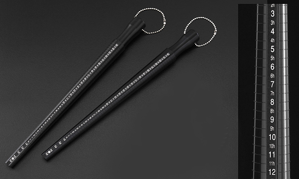 | 高級指輪ゲージとゲージ棒。硬質プラスチック製ゲージ棒はとても軽量なので持ち運びに便利、疲れずなんと言っても大切な | |