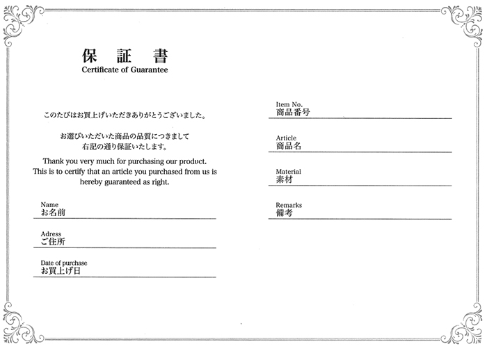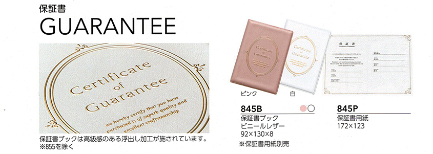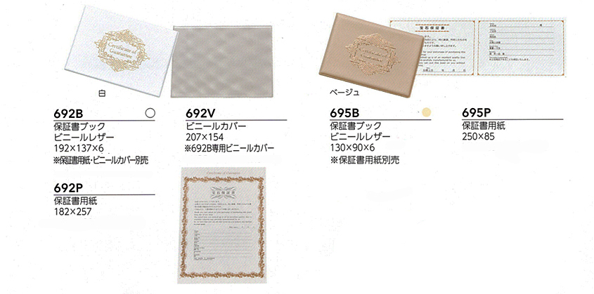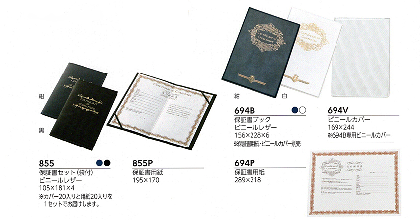 | 保証書ブック | 保証書用紙 | ||||